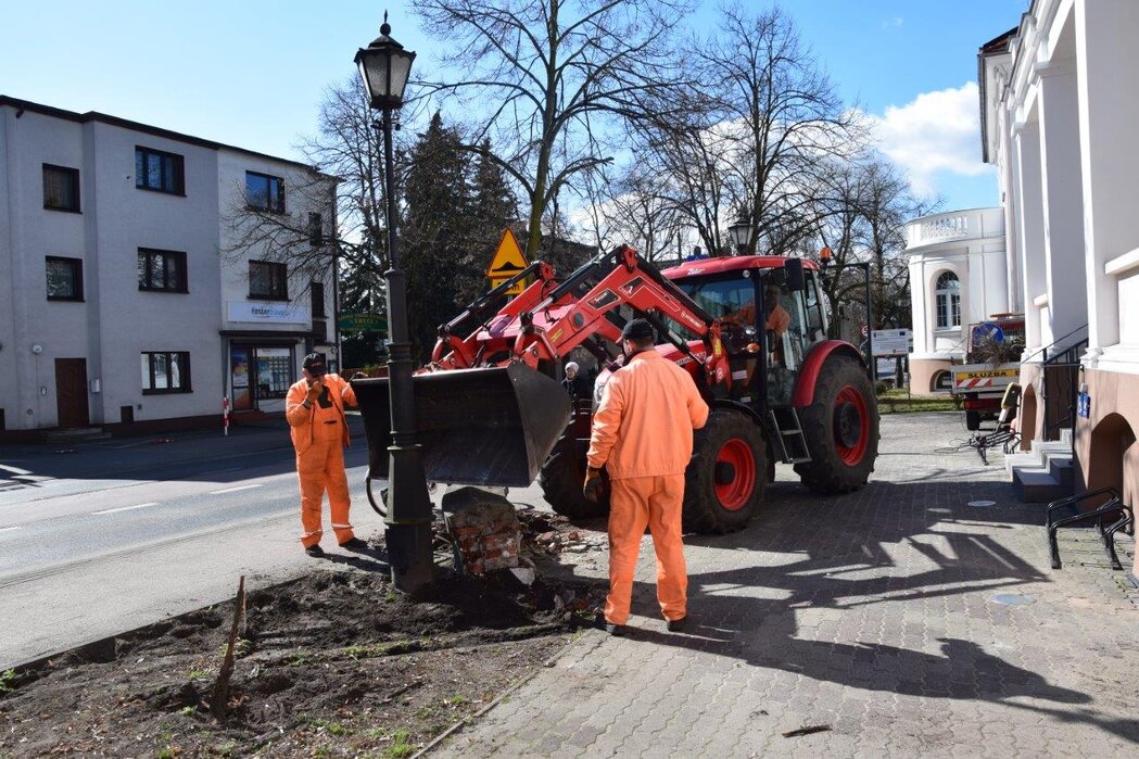 W środę, 5 kwietnia, pracownicy Zarządu Dróg Powiatowych wycięli rosnące przed urzędem rośliny, by przygotować teren pod nowe nasadzenia. Rozebrano także murki przed głównym wejściem do budynku.