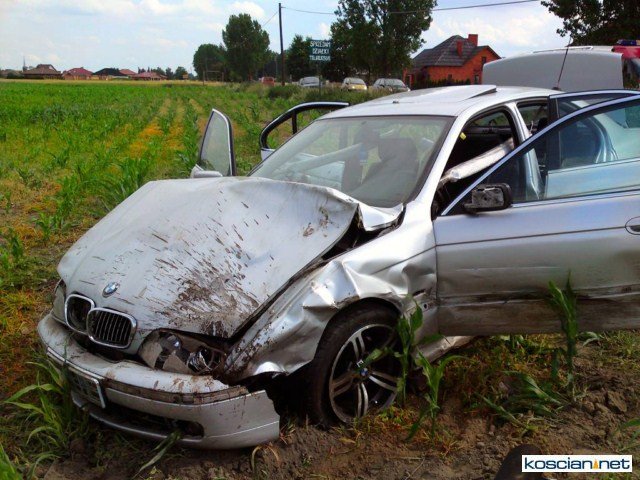 Siła uderzenia była duża. BMW po ścięciu słupa telefonicznego koziołkowało. Dzięki zadziałaniu wszystkich zabezpieczeń podróżujące autem dwie kobiety uszły z wypadku z życiem.
