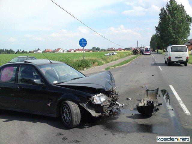 22 czerwca, ok. godz. 15.20, we wsi Piechanin (gm. Czempiń) toyota wyjeżdżająca z drogi podporządkowanej uderzyła w bok jadącego od strony Głuchowa samochodu marki BMW.
