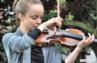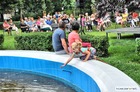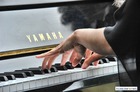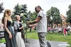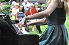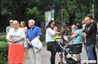 Przy fontannie na Pl. Wolności w Kościanie zagrały: skrzypaczka Aleksandra Rytwińska i pianistka Agnieszka Skorupa.