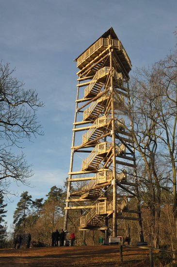 W miejscu tym stała niegdyś wieża widokowa wybudowana przez Niemców. Rozebrano ją z uwagi na zły stan konstrukcji w latach 50-tych ubiegłego wieku.