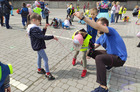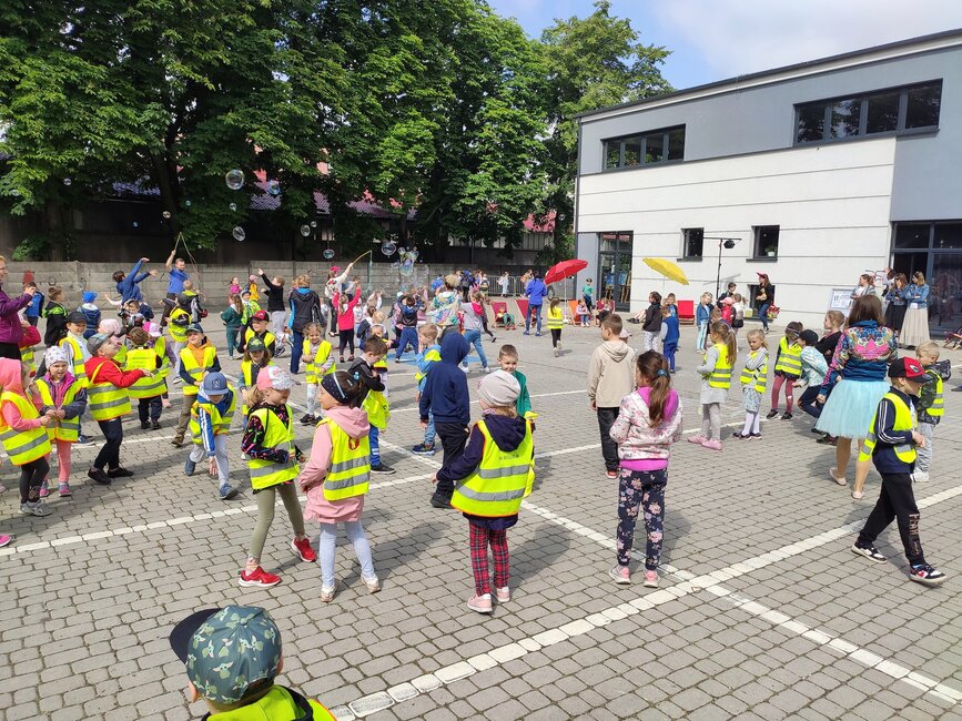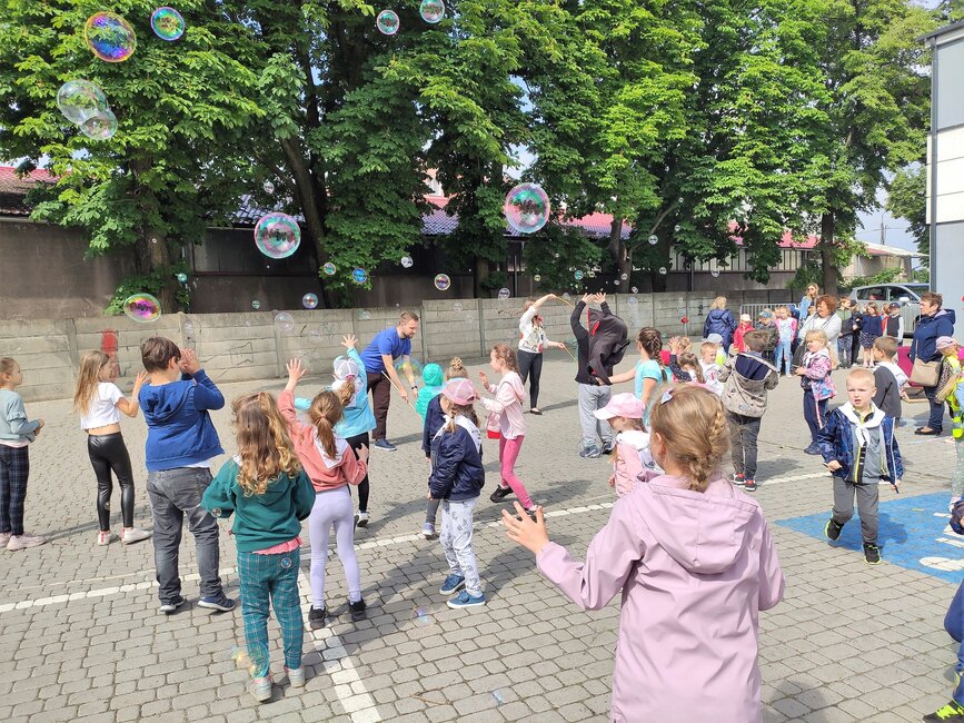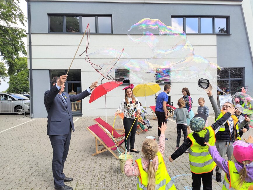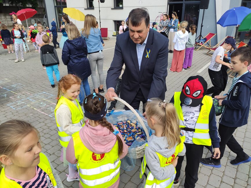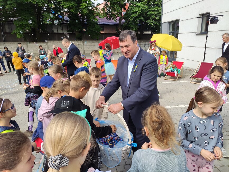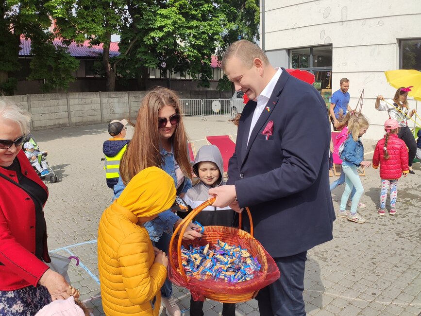 Dzieciom zaproponowano zabawy w stylu sprzed lat: skakanki, balony, bańki, gumy do skakania i ponadczasową grę w klasy. Z kolei burmistrz Piotr Ruszkiewicz i przewodniczący rady miejskiej Dawid Olejniczak częstowali dzieci słodyczami.