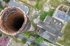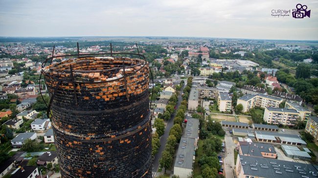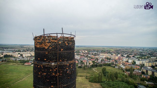 - Fotografie powstały przy użyciu drona z zamysłem pokazania nie tyle samego komina, bo ten jest znany, lecz panoramy miasta z kominem na pierwszym planie – mówi Krzysztof Szydłowski. - Spoglądając na komin z góry widać, że niestety jest w złym stanie technicznym.