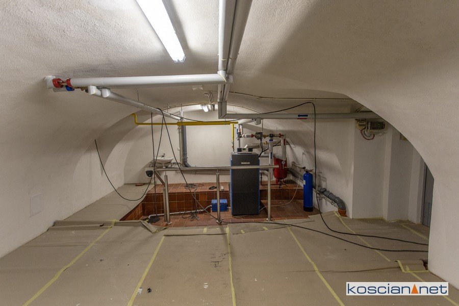 Jesienią schodziliśmy do podziemi po zniszczonych drewnianych schodach. Dziś do piwnic prowadzą przestronne schody betonowe wyłożone płytkami. Na dół można się także dostać windą. W wyremontowanych podziemiach mieścić się będzie magazyn i archiwum. Miejsce to będzie również wykorzystywane do przechowywania urządzeń niezbędnych do realizowania wydarzeń kulturalnych na Rynku. W jednym z pomieszczeń mieści się nowoczesna kotłownia gazowa.