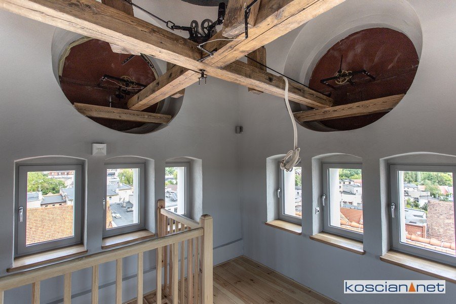 Na gruntownie przebudowane poddasze dotrzeć można stromymi, odrestaurowanymi, drewnianymi schodami oraz windą. Wieża zegarowa była dotąd niedostępna dla mieszkańców. Dzięki rewitalizacji stanie się nową atrakcją turystyczną miasta. Przy okazji rewitalizacji miasto postanowiło przeprowadzić gruntowny remont 127-letniego mechanizmu ratuszowego zegara. Te prace zakończą się w przyszłym miesiącu. Na miejsce powróciły już wskazówki, odnowiono mechanizm wybijający kwadranse i godziny, a wkrótce z pracowni zegarmistrzowskiej Rafała Pikuły i Michała Olejniczaka powróci mechanizm zegara. Tym razem nie trafi do ciasnego pomieszczenia z nieheblowanych desek, gdzie spędził ponad sto lat, lecz zostanie wystawiony na widok publiczny. Po dojechaniu windą na poddasze, i pokonaniu krótkich odrestaurowanych schodów, będzie można zobaczyć na własne oczy zegar wyprodukowany w głogowskiej fabryce Carla Weissa. Planuje się także zamontowanie systemu, który w południe będzie odtwarzał hejnał Kościana.