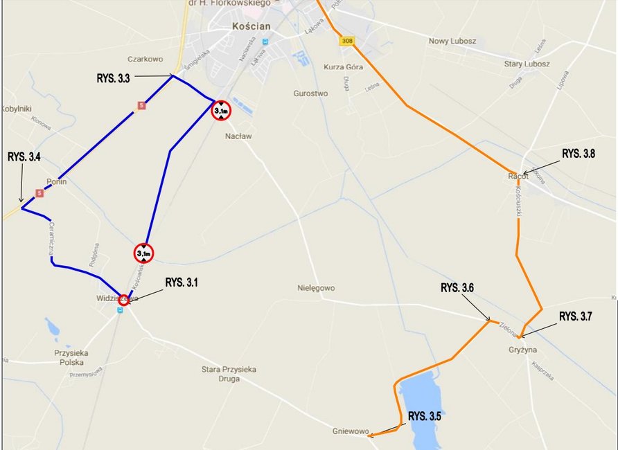 Objazd poprowadzony będzie po trasie: Widziszewo – Nacław/Czarkowo – Czarkowo – DK5 – Ponin – skrzyżowanie DK5 z ul. Ceramiczną – Widziszewo. Przez cały czas zostanie utrzymany ruch pieszych.