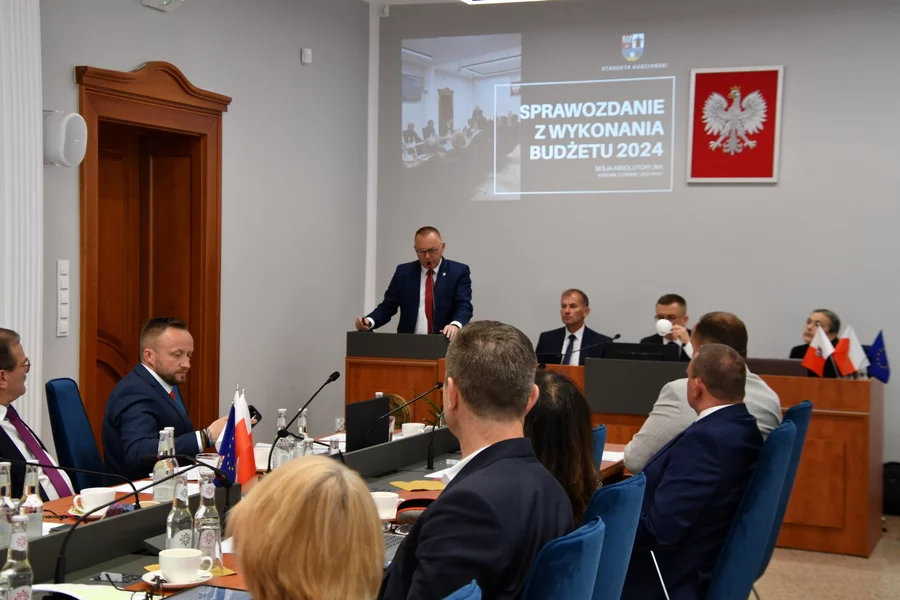 Przed podjęciem uchwały w sprawie absolutorium Artur Opas, Starosta Kościański przedstawił radnym sprawozdanie z wykonania budżetu za 2024 rok.
