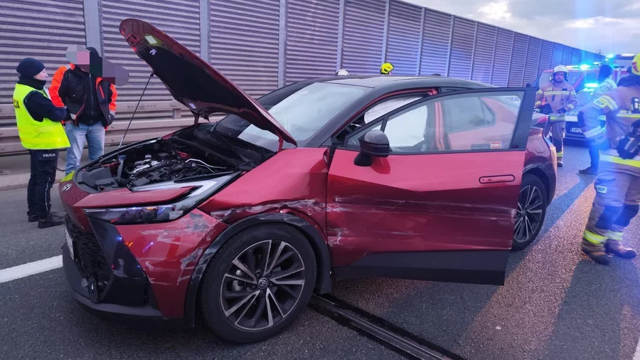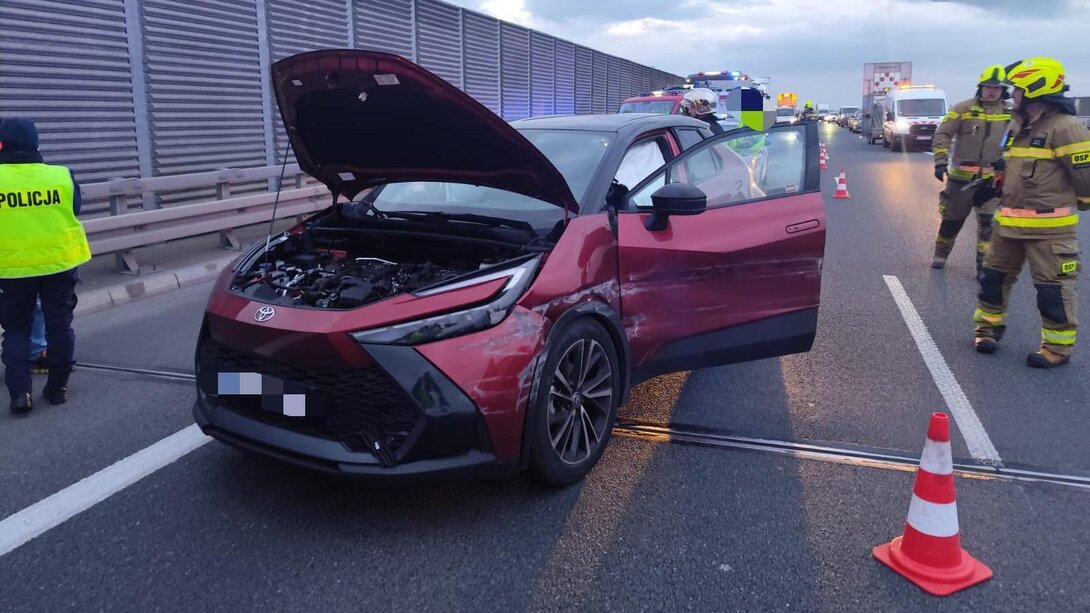Kierująca toyotą, 39-letnia mieszkanka Leszna, z powodu nagłych problemów zdrowotnych zjechała z jezdni i uderzyła w bariery energochłonne. Na miejsce skierowano policję, straż pożarną oraz zespół ratownictwa medycznego. Kobieta została przewieziona do szpitala na szczegółowe badania.