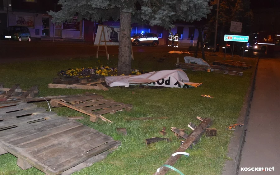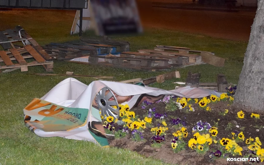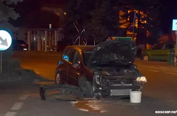 Do zdarzenia doszło w sobotę, 30 marca, około godziny 21:20 na Placu Wojska Polskiego w Śmiglu. Jak wynika z ustaleń policji, 18-latek z gminy Wielichowo, kierując volkswagenem golfem stracił panowanie nad pojazdem, wjechał na pas zieleni i uderzył w ustawione tam banery wyborcze. W samochodzie znajdowały się także trzy pasażerki. Nikt nie odniósł obrażeń. Kierowcę ukarano mandatem.