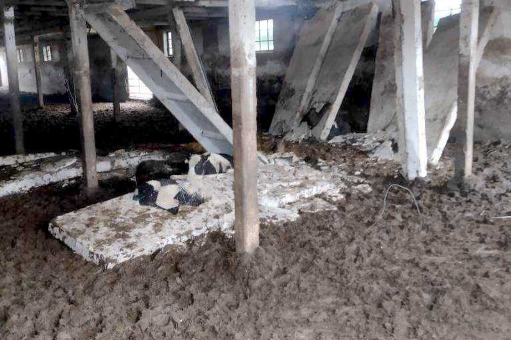 W jednej z obór zawalił się strop i przygniótł cztery jałówki. Trzy padły na miejscu, jedną uśpił lekarz weterynarii.