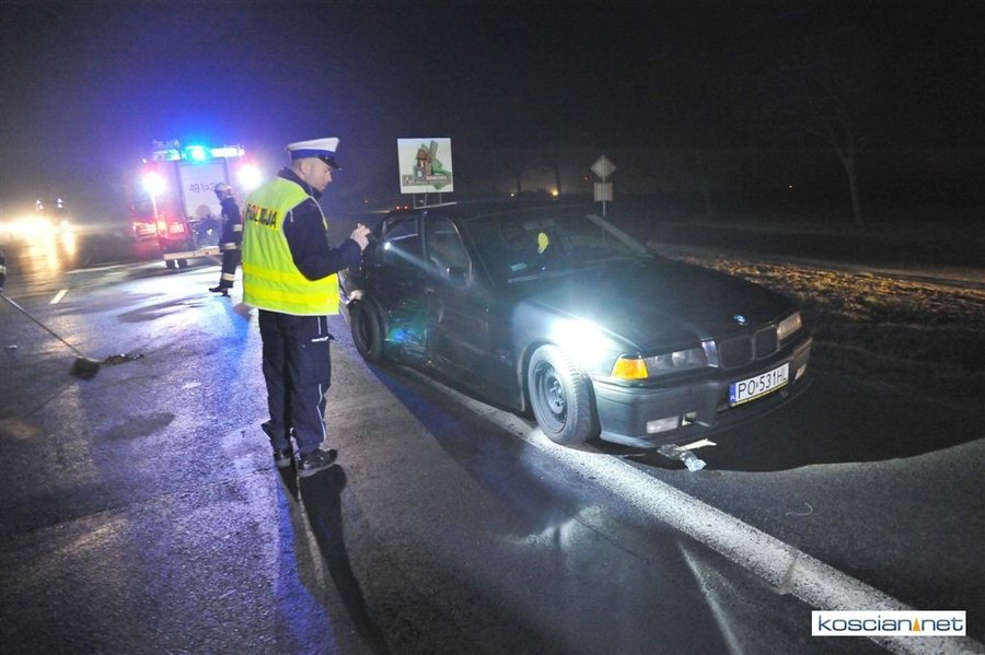 Oba zdarzenia miały miejsce w sobotę, 17 lutego. Do pierwszego doszło około godziny 18. pomiędzy Śmiglem a Glińskiem. W bok zawracającego w niedozwolonym miejscu auta uderzył jadący w kierunku Leszna volkswagen. Sprawca kolizji prowadził samochód marki BMW. Wraz z nim podróżowało dwoje dzieci i ciężarna kobieta. Volkswagenem jechała jedna osoba. Wszyscy wyszli ze zdarzenia bez obrażeń. Kobietę przewieziono do szpitala na badania.