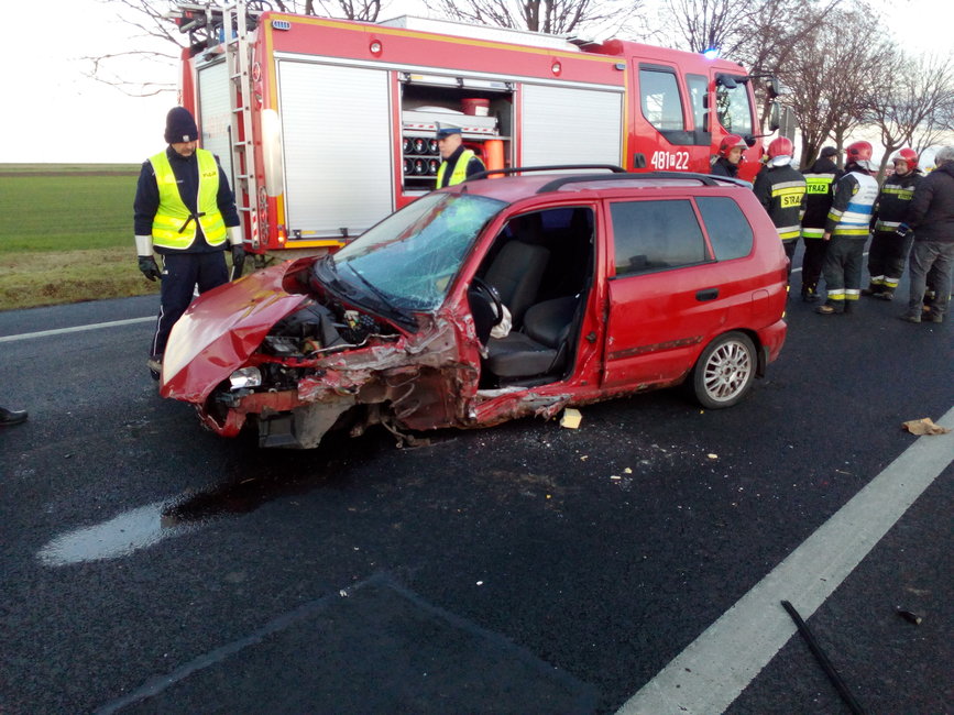 Jadące od strony Poznania mitsubishi – prowadzone przez 56-latkę z Wrocławia - zjechało nagle na przeciwległy pas ruchu i zderzyło się czołowo z volkswagenem polo, którym podróżowało dwóch mieszkańców powiatu grodziskiego. Uczestnicy zdarzenia zostali przewiezieni do kościańskiego szpitala. Kobieta doznała ogólnych potłuczeń ciała. Mężczyźni ze zderzenia wyszli bez szwanku.