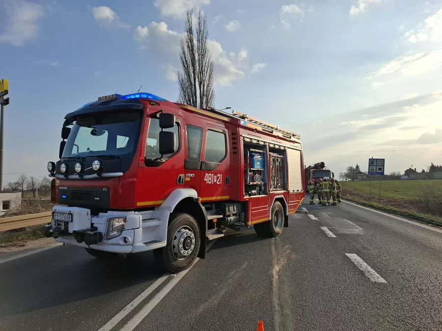 Kobieta została zakleszczona w samochodzie i aby ją uwolnić konieczna była interwencja strażaków. Po wydobyciu z samochodu została przekazana pod opiekę ratowników medycznych, a następnie przetransportowana do szpitala.