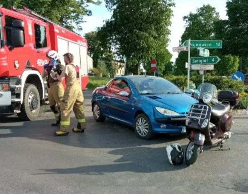 Peugeot 206 zderzył się z motorowerem, którym podróżowało starsze małżeństwo. W wypadku ucierpiała 73-letnia kobieta.