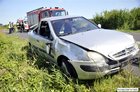 Kierująca citroenem chcąc uniknąć zderzenia z busem zjechała do rowu i dachowała.