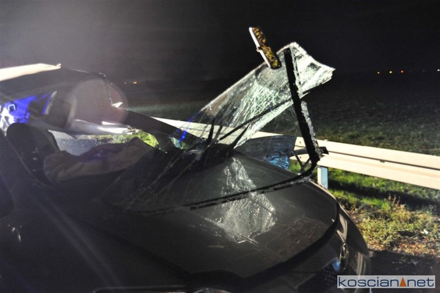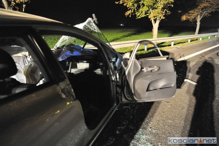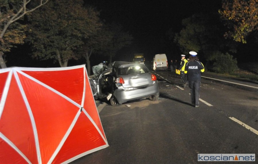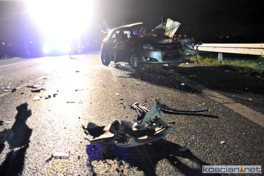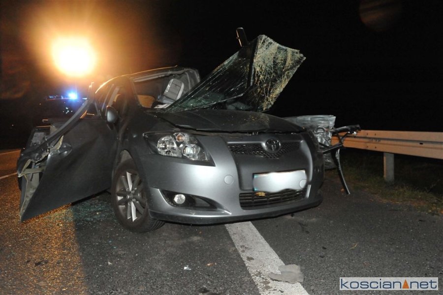 Do wypadku doszło w poniedziałek, 1 października, około godziny 17.30 na krajowej „piątce”, kilkaset metrów za wyjazdem z Kościana w kierunku Poznania. Jadąca w stronę Kościana toyota auris zjechała na przeciwny pas ruchu i zderzyła się z busem.