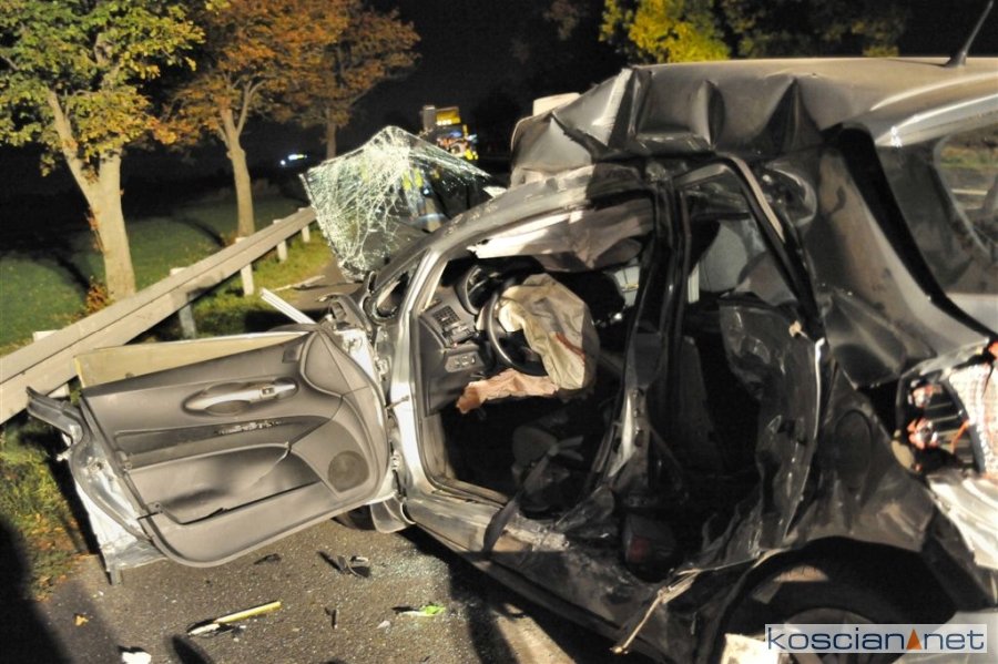 - Trzech mężczyzn z samochodu dostawczego o własnych siłach opuściło pojazd, natomiast kierowca i pasażerka osobówki znajdowali się nieprzytomni wewnątrz auta. Strażacy przy pomocy sprzętu hydraulicznego wykonali dostęp i wspólnie z ratownikami medycznymi ewakuowali rannych. 13-letnia dziewczynka trafiła do ambulansu, gdzie dalszej pomocy udzielały służby medyczne. Ze względu na stan poszkodowanej na miejsce zadysponowany został śmigłowiec Lotniczego Pogotowia Ratunkowego. U kierowcy Toyoty ratownicy nie stwierdzili funkcji życiowych i od razu rozpoczęli resuscytację krążeniowo-oddechową. Zespół ratownictwa medycznego przejął czynności a strażacy wspierali ich działania prowadząc zewnętrzny masaż serca. Niestety wspólne wysiłki nie przyniosły pozytywnego rezultatu i lekarz stwierdził zgon 71-letniego mężczyzny – informuje Dawid Kryś, oficer prasowy Komendy Powiatowej Państwowej Straży Pożarnej w Kościanie. - Przez blisko 4 godziny trwającej akcji droga była zablokowana w obu kierunkach.