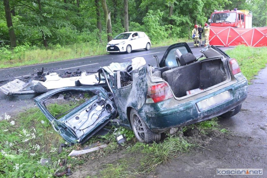 Do wypadku doszło w sobotę, 12 czerwca, około godziny 16. na drodze z Racotu do Gryżyny. Czołowo zderzyły się peugeot 207 i volkswagen golf. Peugeotem jechała sama 47-letnia mieszkanka powiatu kościańskiego. Golfem podróżowały trzy osoby: kierowca i dwie kobiety. W wyniki zderzenia śmierć na miejscu poniósł 59-letni kierowca volkswagena, mieszkaniec powiatu kościańskiego. Pozostałych uczestników wypadku przewieziono do szpitala na badania.