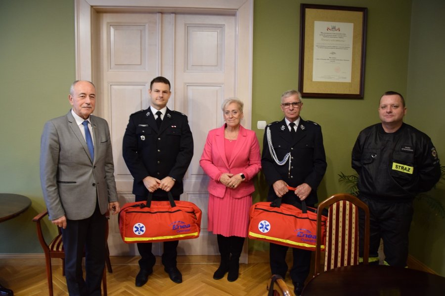 Reprezentanci jednostek OSP z Krzywinia i Jerki odebrali torby medyczne z pełnym wyposażeniem ufundowane przez firmę ENEA.