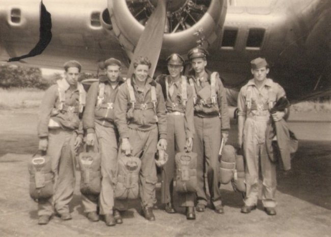„Niebo było czyste, ale zostawialiśmy za sobą grubą smugę. Zbliżaliśmy się do Berlina, w pobliżu nie było śladu wroga. Jednak kiedy nasz strzelec pokładowy otworzył ogień, zza smugi znienacka wyłoniły się cztery Messerschmitty Me 262 i uderzyły niszcząc między innymi lewe skrzydło naszego B-17. Nikt z nas nie wyskoczył na spadochronie, między innymi dlatego, że te uległy częściowemu zniszczeniu. Utrzymując częściową kontrolę nad maszyną staraliśmy się przedostać poza linię frontu, by nie lądować na terytorium wroga. Podałem pilotowi kierunek na wschód. Na wysokości 9 tys. stóp minęliśmy Odrę i wylądowaliśmy na polu w pobliżu Kościana” – wspominał w 1983 r. lotnik nawigator Richard Scroxton, członek załogi latającej fortecy.