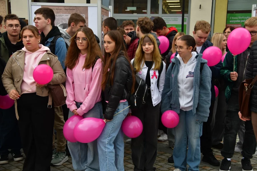 Na rynku uczestnicy mogli wysłuchać wystąpień specjalistów z SP ZOZ w Kościanie, którzy przypomnieli o rosnącej liczbie zachorowań na nowotwory, znaczeniu regularnych badań profilaktycznych i roli samokontroli w wczesnym wykrywaniu raka piersi.