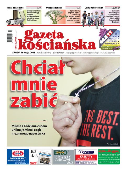 W numerze między innymi: o Miłoszu z Kościana, który cudem uniknął śmierci z rąk nieznanego mu napastnika, o bardzo niebezpiecznej roślinie, o rikszach na ulicach Kościana, o rekordowym duathlonie w Czempiniu, o imieninach śmigielskich wiatraków, o dziesięcioletniej współpracy z gminą Badacsonytomaj, o tygodniu bibliotek, o misji integracja. Ponadto: ilustrowany przegląd wydarzeń tygodnia z wszystkich gmin powiatu kościańskiego, kronika policyjna, informator kulturalny i obszerny serwis sportowy. Gazeta w sprzedaży od 16 maja