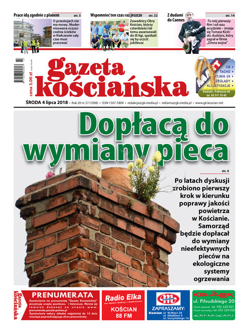 W numerze między innymi: o programie dopłatach do wymiany węglowych pieców w Kościanie, o wielkiej modernizacji oczyszczalni ścieków, o filmowej przygodzie dudziarskiego mistrza, o tym jak trudno odzyskać pieniądze od firmy trudniącej się sprzedażą bezpośrednią, o jubileuszu strażaków z Choryni, o kolejnym kandydacie na burmistrza Kościana, o piłkarzach, którzy czterdzieści lat temu wprowadzili Obrę do trzeciej ligi, sylwetka Antoniego Kaźmierczaka. Ponadto: ilustrowany przegląd wydarzeń tygodnia z wszystkich gmin powiatu kościańskiego, kronika policyjna, informator kulturalny i obszerny serwis sportowy. Gazeta w sprzedaży od 4 lipca.