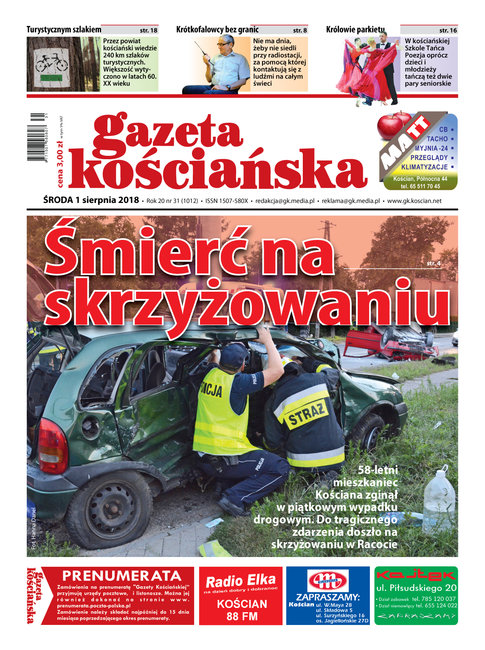 W numerze między innymi: o śmiertelnym wypadku w Racocie, o krótkofalowcach z Kościana, o oszustach i naciągaczach, o szlakach turystycznych w powiecie, o seniorskich parach tanecznych, o krzywińskiej ochronce, o tym gdzie na pięć godzin można zniknąć z dzieci, o planach piłkarskiej Obry Kościan i kolejny fragment twórczości Adama Tomaszewskiego. Ponadto: ilustrowany przegląd wydarzeń tygodnia z wszystkich gmin powiatu kościańskiego, kronika policyjna, informator kulturalny i obszerny serwis sportowy. Gazeta w sprzedaży od 1 sierpnia.