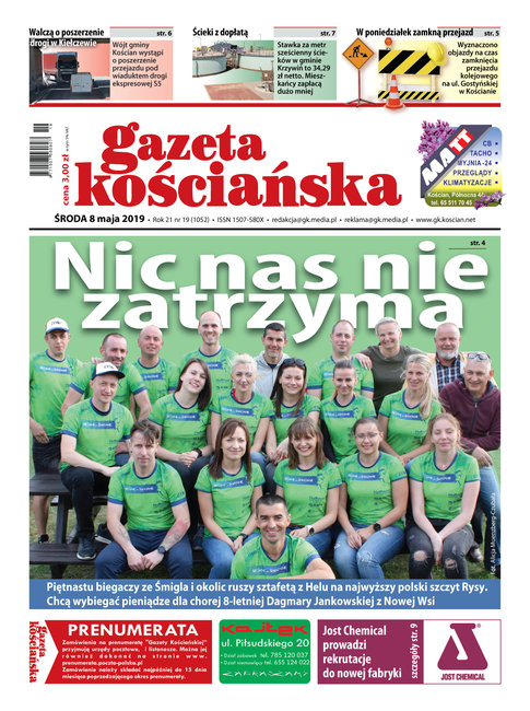 Ponadto: ilustrowany przegląd wydarzeń tygodnia z wszystkich gmin powiatu kościańskiego, kronika policyjna, informator kulturalny i obszerny serwis sportowy. Gazeta w sprzedaży od 8 maja 2019 r.