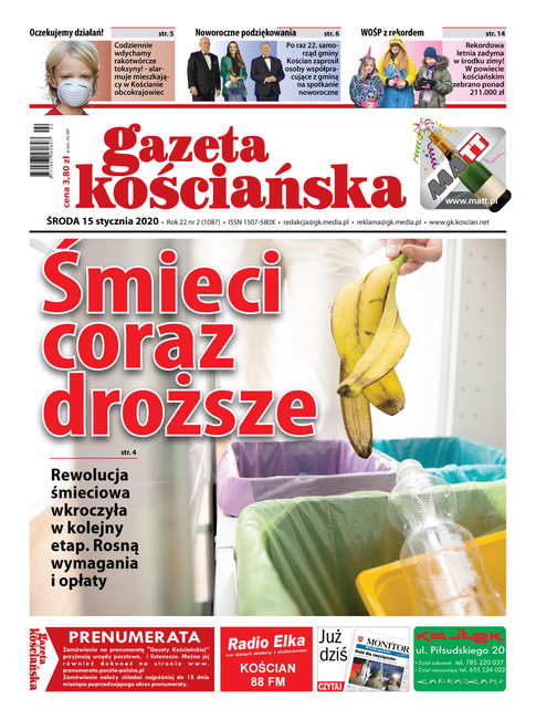 W numerze między innymi: o obowiązkowej segregacji i rosnących opłatach za wywóz śmieci, o kościańskim smogu oczami obcokrajowca, o rekordowej zbiórce Wielkiej Orkiestry Świątecznej Pomocy, o roztańczonych siostrach Kuciak, o nagradzanym bariście z Kościana, o planach samorządu powiatu, o protestach sędziów, o zbliżającym się koncercie karnawałowym. Ponadto ilustrowany przegląd wydarzeń tygodnia z wszystkich gmin powiatu kościańskiego, kronika policyjna, informator kulturalny, obszerny serwis sportowy oraz MONITOR WIELKOPOLSKI. Gazeta w sprzedaży od 15 stycznia