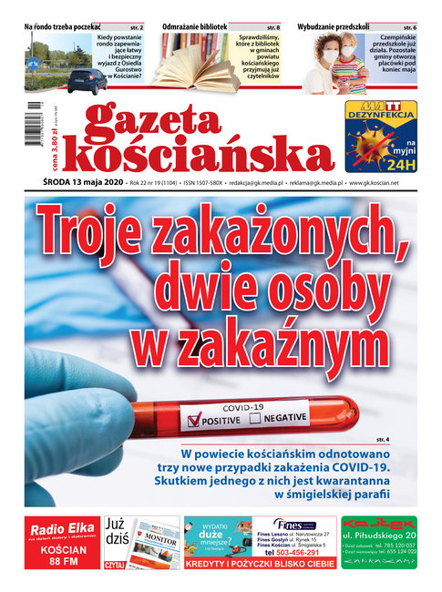W numerze między innym: o kolejnych zakażaniach koronawirusem i kwarantannie w śmigielskiej farze, o uruchamianiu przedszkoli i bibliotek, o tym kiedy powstanie rondo zapewniające bezpieczny wyjazd z Osiedla Gurostwo, o stuleciu strażaków z Bonikowa, o zbiórce na budowę „kościańskiej” studni w Sudanie, o kolorowaniu starych zdjęć, ostatni odcinek opowieści o wielkim pożarze z 1798 roku oraz MONITOR WIELKOPOLSKI. Ponadto ilustrowany przegląd wydarzeń tygodnia z wszystkich gmin powiatu kościańskiego i kronika policyjna. Gazeta w sprzedaży od 13 maja
