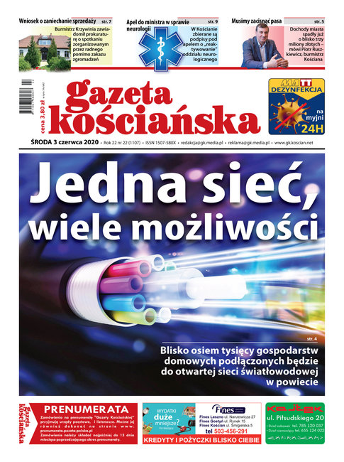W numerze między innym: o otwartej sieci światłowodowej w powiecie w zasięgu której będzie osiem tysięcy gospodarstw domowych; o zaciskaniu pasa w kościańskim samorządzie, o uporze konserwatora i ministerstwa w sprawie tak zwanego domku Masztalerza, o zawirowaniach wokół dworku Wańkowiczów, o remoncie krzywińskiej świątyni, o pustkach w szkołach, o zbieraniu podpisów pod apelem do ministra zdrowia, o epidemii cholery w powiecie w XIX wieku. Ponadto ilustrowany przegląd wydarzeń tygodnia z wszystkich gmin powiatu kościańskiego i kronika policyjna. Gazeta w sprzedaży od 3 czerwca