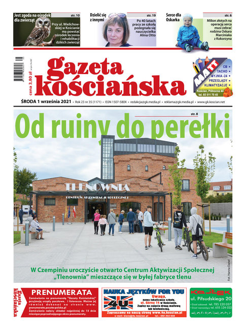 W numerze między innym: o Centrum Aktywizacji Społecznej „Tlenownia” w Czempiniu, o zbiórce na operację serca dziewiętnastomiesięcznego Oskara z Kokorzyna, o pomyśle utworzenia ośrodka leczenia i rehabilitacji dla dzikich zwierząt w Kościanie, rozmowa z Aliną Otto, która po 40 latach pracy w szkole przeszła na emeryturę. Ponadto: ilustrowany przegląd wydarzeń tygodnia z wszystkich gmin powiatu kościańskiego, kronika policyjna i obszerny serwis sportowy. Gazeta w sprzedaży od 1 września.