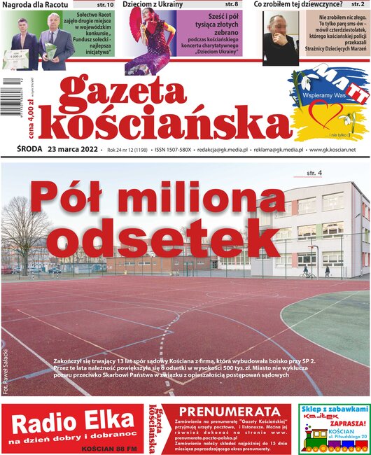 W numerze między innym: o trwającym 13 lat sporze sądowym Kościana z firmą, która wybudowała boisko przy Szkole Podstawowej nr 2, o mężczyźnie wysyłającym zdjęcia swojego przyrodzenia osobie podającej się za czternastoletnią dziewczynkę, o pomocy uchodźcom wojennym z Ukrainy, o możliwych lokalizacjach wybiegu dla psów w Kościanie, o nagrodzie dla Racotu i nowym sezonie wykładów TMZK. Ponadto: ilustrowany przegląd wydarzeń tygodnia z wszystkich gmin powiatu kościańskiego, kronika policyjna i obszerny serwis sportowy. Gazeta w sprzedaży od 23 marca