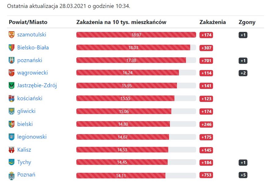 Dane dla powiatu z niedzieli, 28 marca, z godziny 10.30: