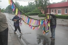 Jest godzina 17.15. Zwykle o tej porze w wigilię Bożego Ciała zaczyna się już ruch na ulicy. Wiesza się pierwsze girlandy. Tym razem nie ma jeszcze żadnej. Pada, a ja dowiaduję się, że z roku na rok coraz więcej jest i takich girland, co to nie mają już żadnej, nawet sztucznej zieleniny. Wiesza się dla wygody sznury proporczyków wielorazowego użytku. Niektórzy w ogóle ze stawiania bram zrezygnowali.