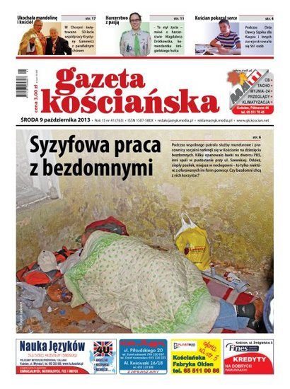 W GK między innymi: o próbach niesienia pomocy bezdomnym, o harcerskim stylu życia, o albumie godnym polecenia, o przygotowaniach do przejęcia pałacu, o jubileuszu mandolinistki, o odzewie na apel chorego na białaczkę Kacpra, o atutach małego z pozoru banku, o pianistce z Kościana i sposobie na błotniste drogi w Śmiglu. Ponadto: ilustrowany przegląd wydarzeń minionego tygodnia, zaproszenia na imprezy, kronika policyjna i serwis sportowy. Gazeta w sprzedaży od 9 października.
