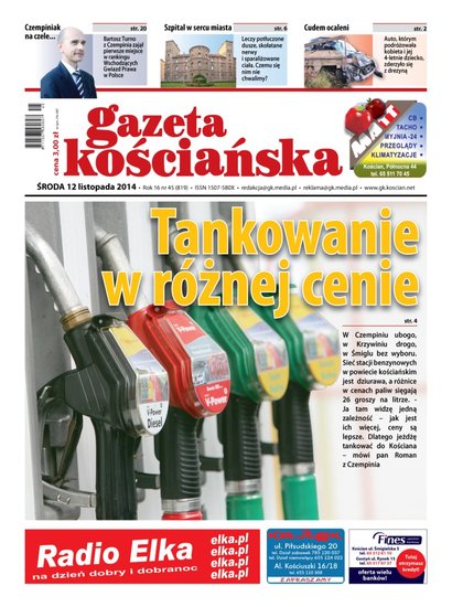 W GK między innymi: o tym, gdzie i za ile tankujemy paliwo, o wielkim szpitalu w centrum Kościana, o kontroli w śmigielskiej „komunalce”, o wschodzącej gwieździe prawa z Czempinia, o wyroku dla sprawcy wypadku przy „Selekcie” oraz liczne relacje ze spotkań przedwyborczych. Ponadto: ilustrowany przegląd wydarzeń z wszystkich gmin powiatu kościańskiego, kronika policyjna i obszerny lokalny serwis sportowy. Gazeta w sprzedaży od 12 listopada