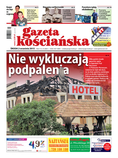 W numerze między innymi: o pożarze zajazdu Pod Kaczorem, o Kacprze czekającym na kolejny przeszczepu szpiku, o ustaleniu przyczyny zatrucia pszczół w śmigielskich pasiekach, o bitwach i zbrojnych potyczkach wokół Kościana na przestrzeni wieków, o dzielnym Deutschu, który oparł się Niemcom, o zmianie w czempińskiej bibliotece, o powiatowych dożynkach, o reaktywacji szkoły w Borowie. Ponadto: ilustrowany przegląd wydarzeń tygodnia z wszystkich gmin powiatu kościańskiego, kronika policyjna, informator kulturalny i serwis sportowy. Gazeta w sprzedaży od 2 września.