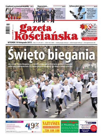 Ponadto: ilustrowany przegląd wydarzeń tygodnia z wszystkich gmin powiatu kościańskiego, kronika policyjna, informator kulturalny. Gazeta w sprzedaży od 10 listopada 2015 roku