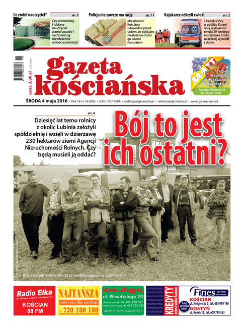 W numerze między innymi: o walce rolników o ziemię, o odnalezieniu ciała młodego kościaniaka, o podejrzeniach kierowanych pod adresem lubianego nauczyciela, o gorącej dyskusji wokół wyboru dyrektora OWP, o kadrowych roszadach w śmigielskiej radzie, o kradzieży wody i nowych wodomierzach, o wyremontowanym skrzyżowaniu, które trzeba przebudować, o kościaniaku, który wygrał w sądzie z policją, o wyremontowanych oddziałach powiatowego szpitala. Ponadto: ilustrowany przegląd wydarzeń tygodnia z wszystkich gmin powiatu kościańskiego, kronika policyjna, informator kulturalny i obszerny serwis sportowy. Gazeta w sprzedaży od 4 maja