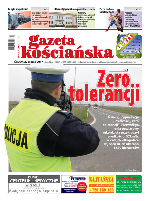 W numerze między innymi: o policyjnej akcji „zero tolerancji”, o niechcianym „domku Masztalerza”, który nagle stał się unikatowy, o obrzucaniu jajkami biura poselskiego w Kościanie, o oświatowej debacie w Racocie, o zmianach na letnisku w Nowym Dębcu, o tym czego domagają się mieszkańcy dwóch kościańskich ulic, o spotkaniu z posłami PO, o pożarze w Czaczu, o zakochanych w Surzyńskim, o gali sportów walki, wywiad z byłym prezesem Obry Janem Ludwiczakiem. Ponadto: ilustrowany przegląd wydarzeń tygodnia z wszystkich gmin powiatu kościańskiego, kronika policyjna, informator kulturalny i obszerny serwis sportowy. Gazeta w sprzedaży od 22 marca
