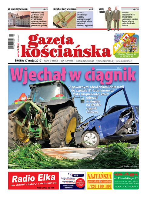 W numerze między innymi: o procesie sprawcy śmiertelnego wypadku w Jarogniewicach, o zderzeniu fiata z rolniczym ciągnikiem, o postępowaniu wyjaśniającym w kościańskiej „jedynce” dotyczącym uderzenia ucznia w twarz, o rodzinie zajmującej się od 150 lat lasami, o konnej pasji Olivii, o tygodniu bibliotek i spotkaniu z Wojciechem Jagielskim, o wielkiej imprezie sportowej w Czempiniu, o nagrodzie dla kościańskiego wydawnictwa, o ambasadorze z Jurkowa. Ponadto: ilustrowany przegląd wydarzeń tygodnia z wszystkich gmin powiatu kościańskiego, kronika policyjna, informator kulturalny i obszerny serwis sportowy. Gazeta w sprzedaży od 17 maja