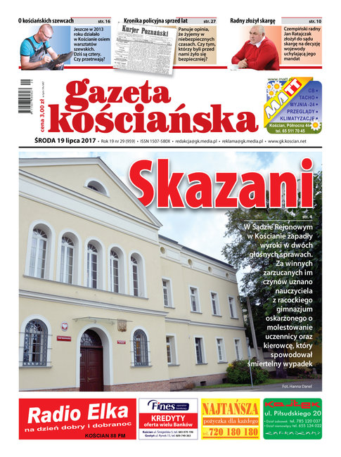 Ponadto: ilustrowany przegląd wydarzeń tygodnia z wszystkich gmin powiatu kościańskiego, kronika policyjna, informator kulturalny i obszerny serwis sportowy. Gazeta w sprzedaży od 19 lipca 2017 roku.