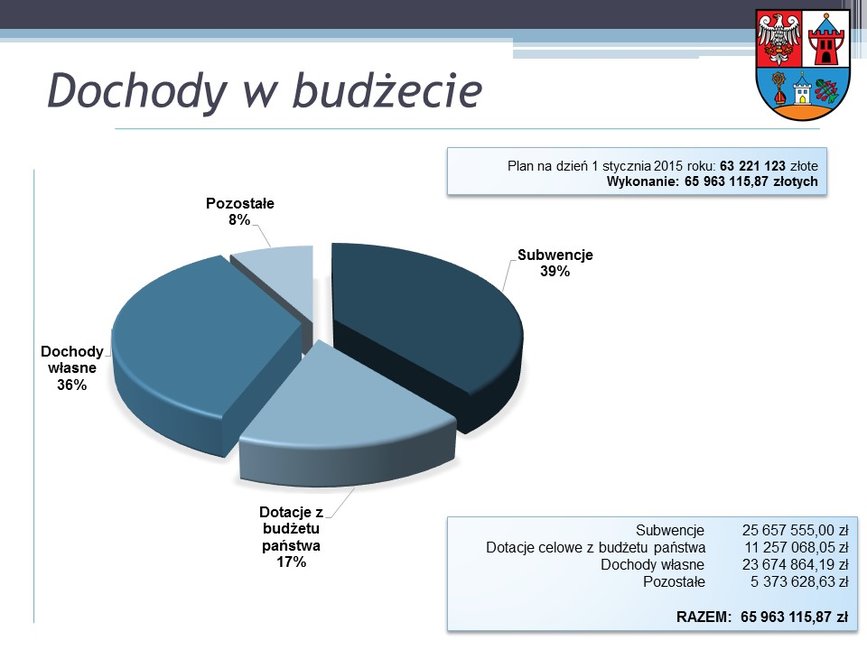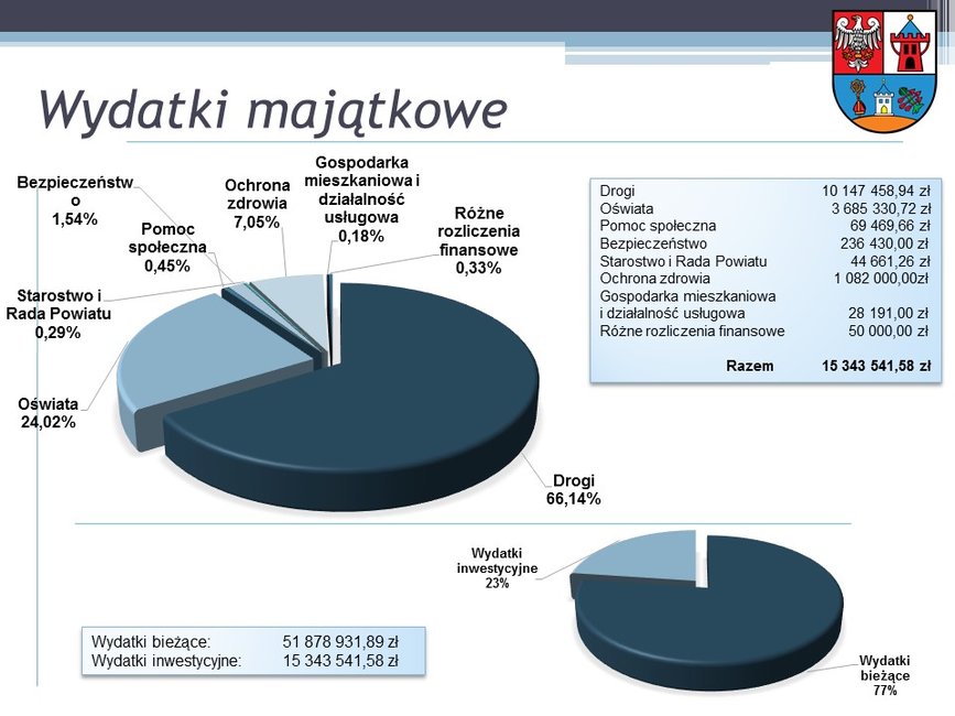 Przed głosowaniem starosta Bernard Turski przedstawił radnym sprawozdanie, przypominając najważniejsze informacje o ubiegłorocznym budżecie i działaniach zarządu. Dochody przekroczyły 65,9 mln zł i były wyższe od planowanych o ponad 2,7 mln zł. Natomiast wydatki przekroczyły 67 mln zł i były wyższe od planowanych o ponad 3 mln zł. Najwięcej środków pochłonęły inwestycje drogowe (66,14%, tj. ponad 10 mln zł), oświata (24,02%), ochrona zdrowia (7,05%) i bezpieczeństwo (1,54%).