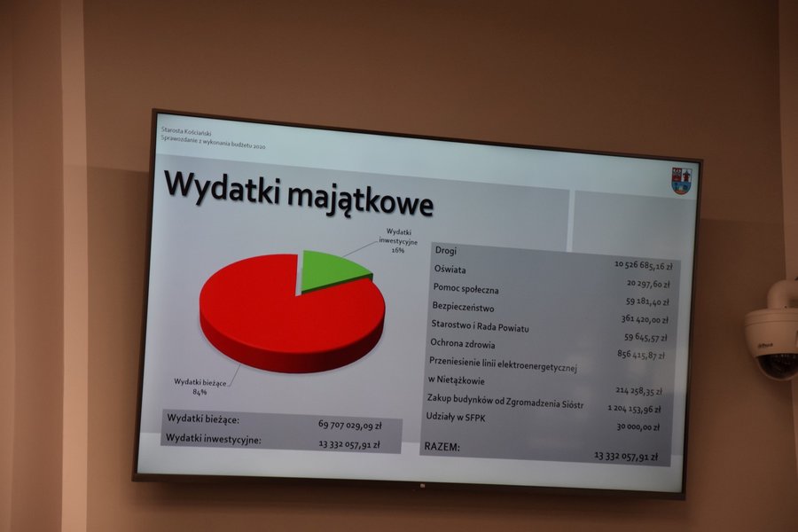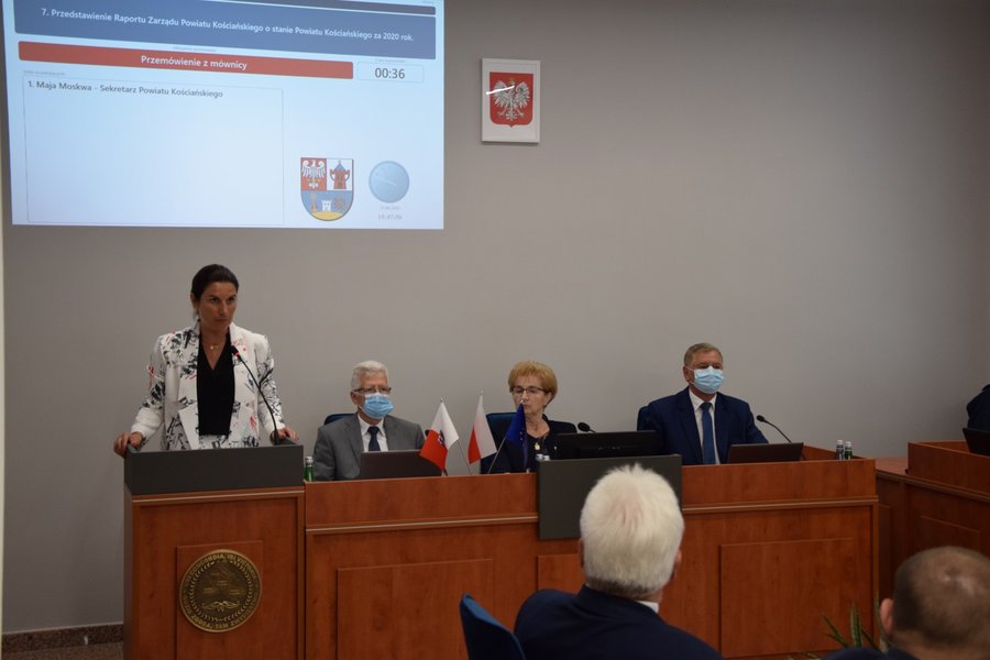 Przed głosowaniem Starosta Kościański Henryk Bartoszewski przedstawił radnym informację z wykonania budżetu oraz działań Zarządu Powiatu i Starostwa Powiatowego w roku 2020. W swoim wystąpieniu podkreślał, że wykonanie budżetu w roku poprzednim w dużej mierze zdominowane było przez epidemię koronawirusa. Wiele wydarzeń nie mogło się odbyć, znaczne, nieplanowane wcześniej środki, musiały zostać przesunięte na pole walki z wirusem.