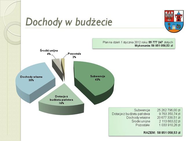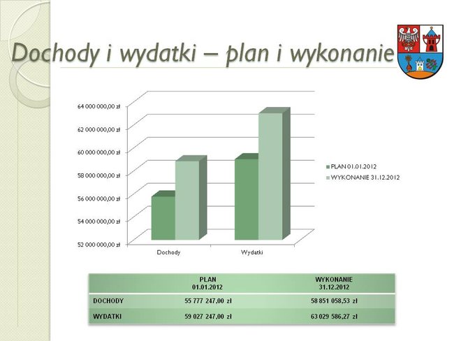 Poniżej slajdy z prezentacji o wykonaniu budżetu pokazanej podczas sesji.