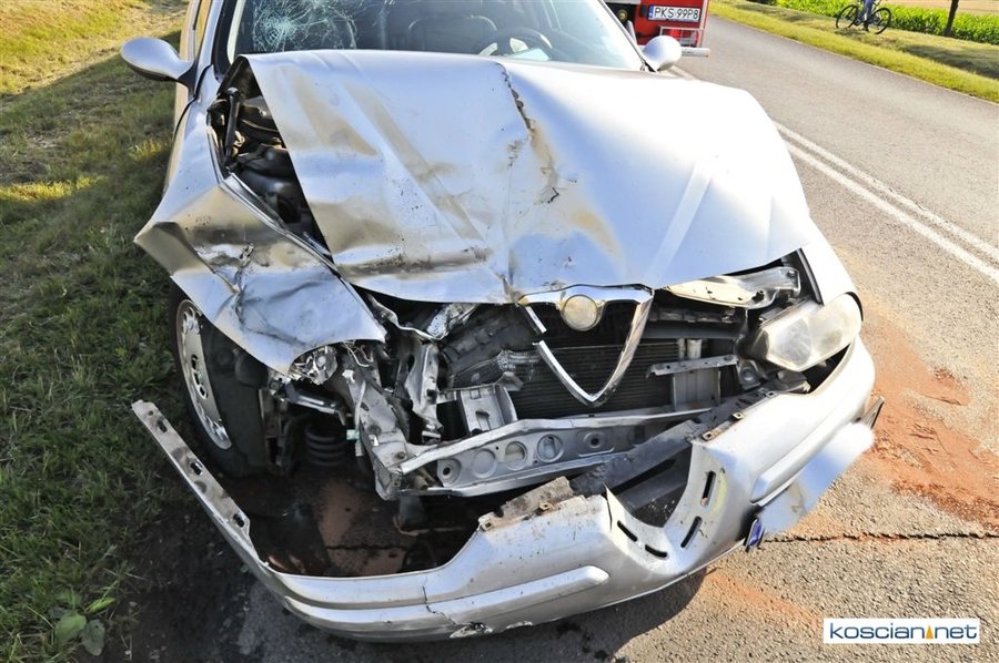 Do zdarzenia doszło około godziny 18. na drodze wyjazdowej ze Śmigla w kierunku Kościana (ul. Zjazdowa). Alfa romeo uderzyła w tył jadącego w tym samym kierunku opla. Kierująca oplem wyszła ze zdarzenia bez szwanku, kierowcę alfy przewieziono do szpitala.