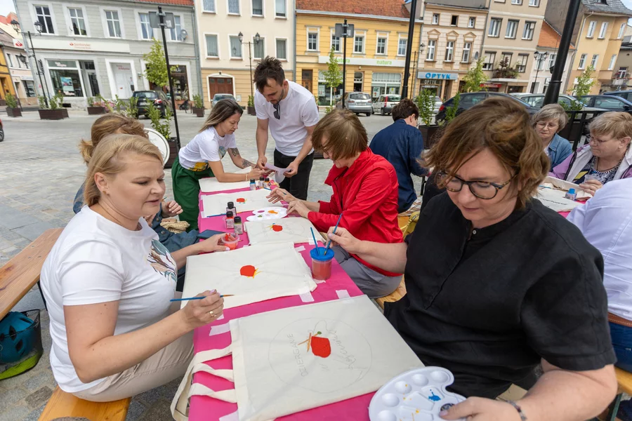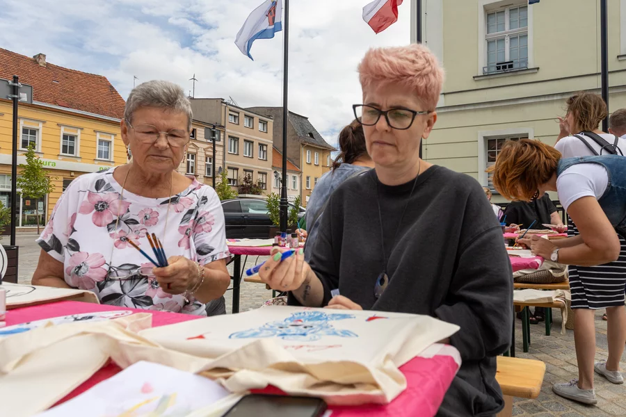 W sobotę, na kościańskim Rynku odbyły się warsztaty malowania płóciennych toreb zorganizowane na przez grupę Dzierganie w Kościanie oraz artystów Ewę i Marcina Michalewiczów.