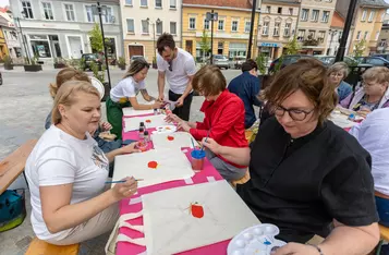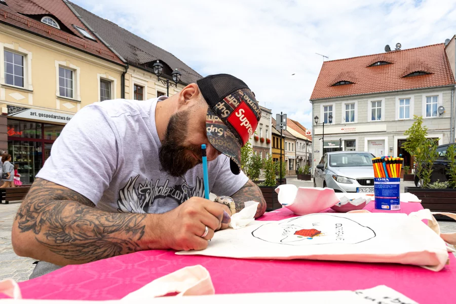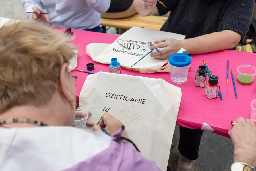 W plenerowych warsztatach wzięło udział kilkanaście osób, w tym burmistrz Sławomir Kaczmarek i jego zastępca Patryk Piasecki. Większość namalowała na torbach logo grupy Dzierganie w Kościanie, ale nie zabrakło autorskich pomysłów.